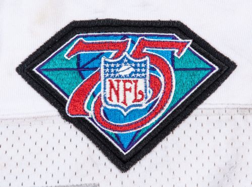 Celebrating the NFL's 75th anniversary with a patch on the left chest.