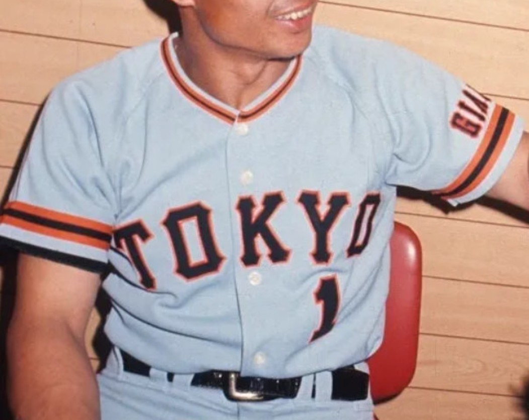 After Shigeo Nagashima's retirement as player and appointment as Giants' coach, also the away uniform was revamped, now ...using the same font as the San Francisco Giants and changing the colour to sky blue. The three stripes on the sleeves and the sides of the knees have been reduced to one and made thicker.