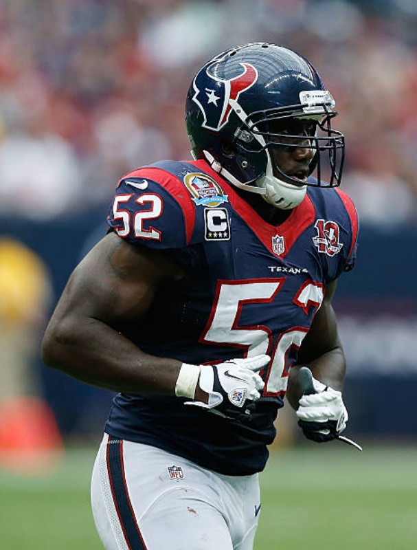 Celebrando o 10º aniversário dos Texans com um patch especial no lado esquerdo do peito e outro patch no lado oposto par...